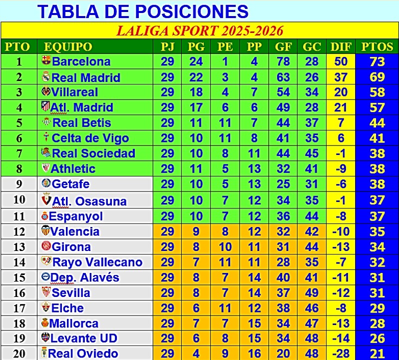 Barcelona y Real Madrid ganaron en la fecha que acaba de terminar este domingo, continúa la tira y encoje entre estos dos equipos que cada día aumentan su ventaja sobre sus más inmediatos seguidores.