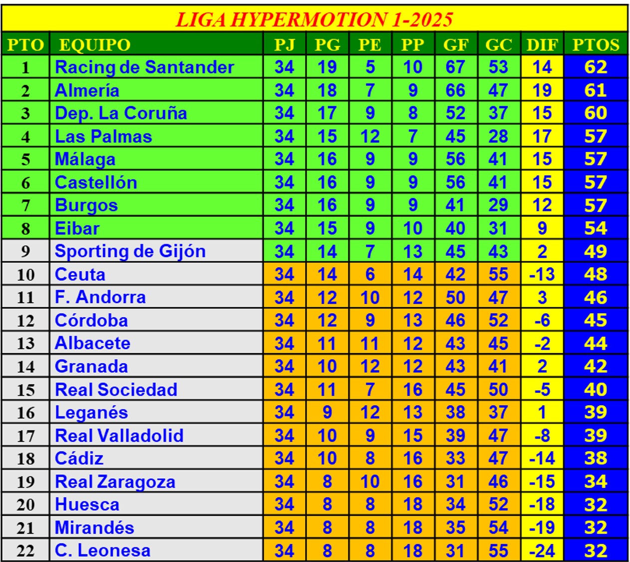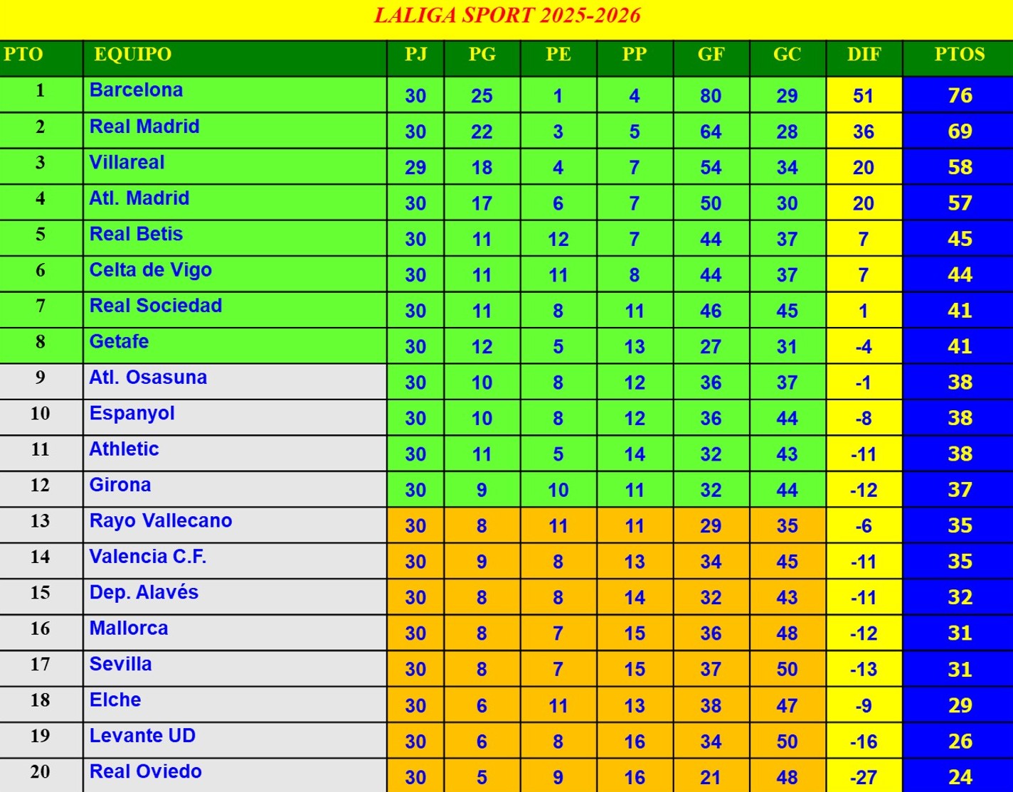 TABLA DE POSICIONES