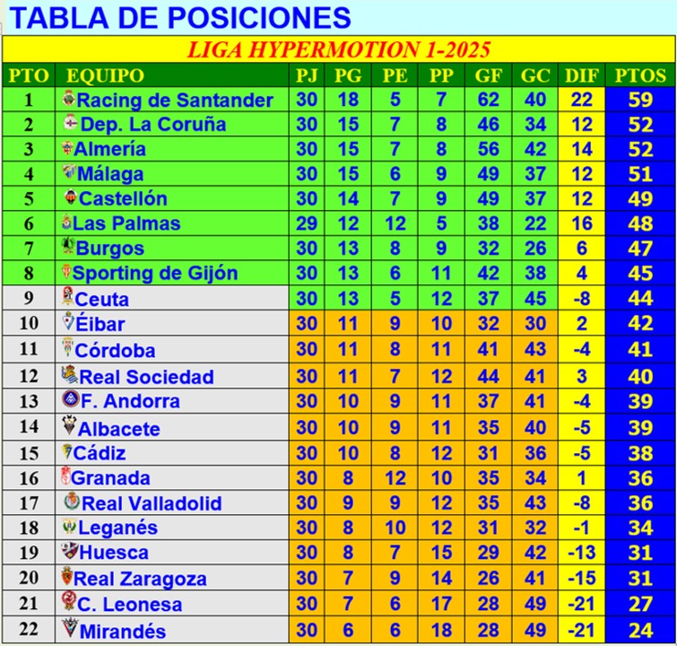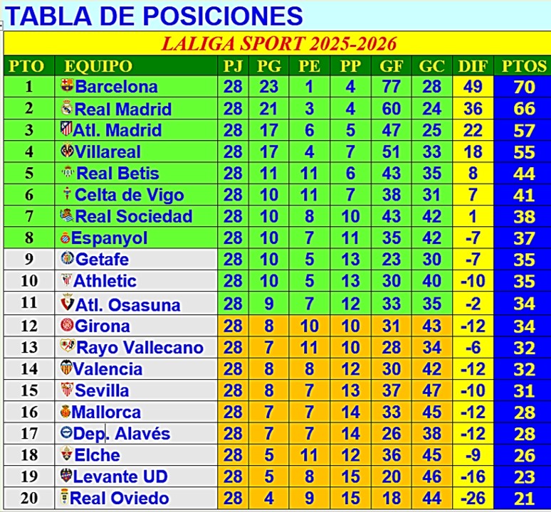 Al finalizar este lunes las dos jornadas de las dos divisiones de España, este s el resume de la acontecido en el fútbol del país ibérico: