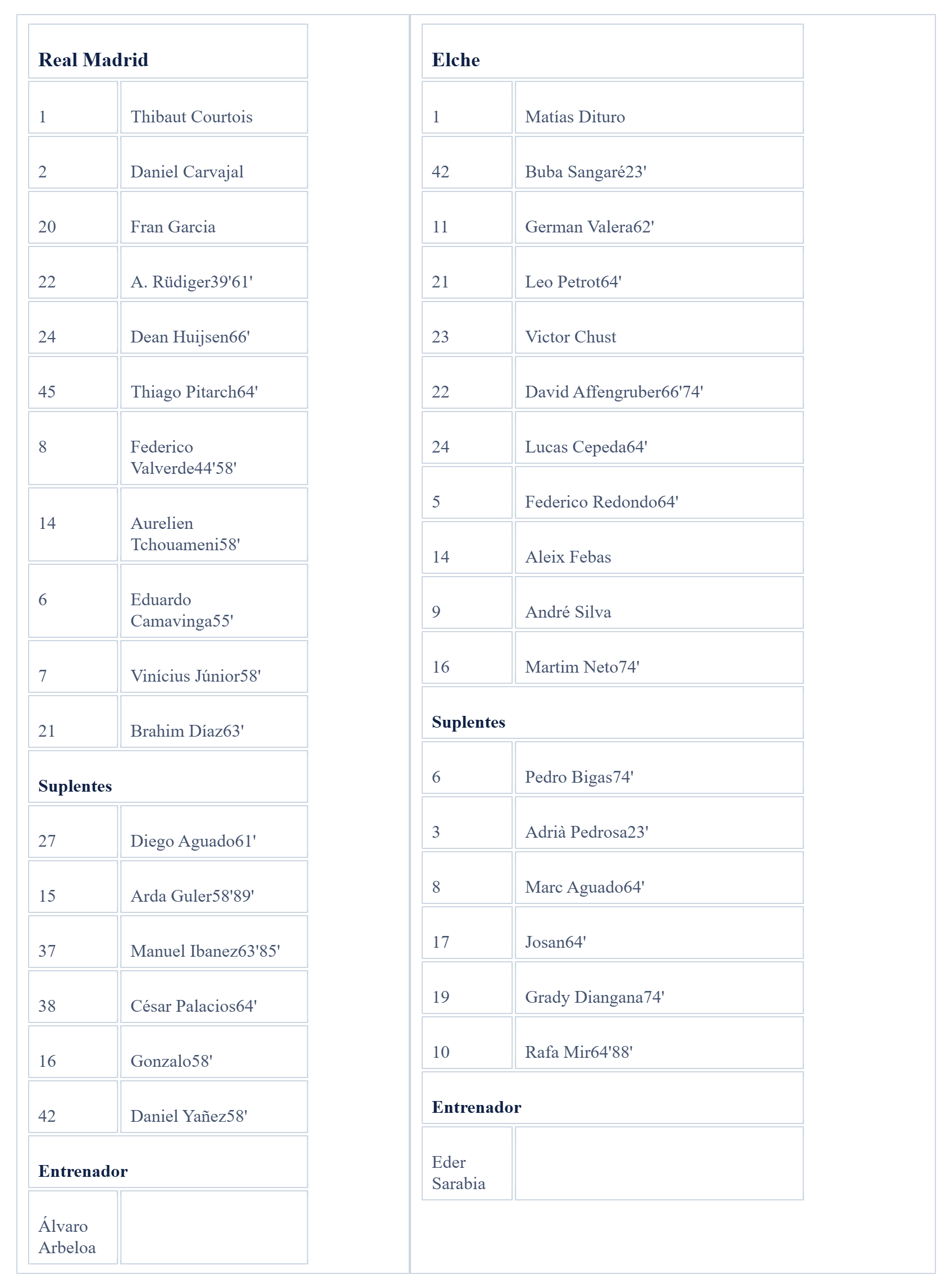 El Real Madrid goleó al Elche en el Bernabéu y sumó tres puntos más en el pulso que mantiene por el título de Liga. El encuentro se rompió en los minutos finales de la primera mitad con el tanto de volea de Rüdiger y un nuevo golazo de Valverde. En la segunda mitad, Huijsen marcó el 3-0 con un testarazo tras asistencia de Yáñez y los visitantes redujeron distancias. Lo mejor se guardó para el final con el gol antológico de Arda Güler desde su campo, de los que hacía mucho tiempo que no se veían en el estadio.